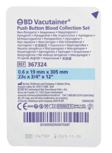 Ensemble de prélèvement sanguin Vacutainer BD 23ga x 3/4″ long 12″